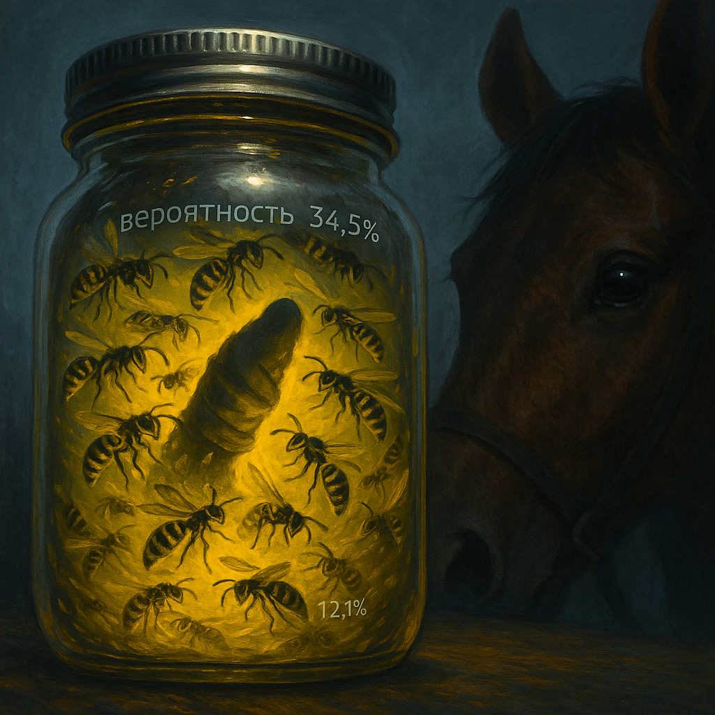 С осторожностью извлекалась стеклянная ёмкость из сумки, на что насекомые реагировали яростным жужжанием. Конь, Василек, настороженно косясь на банку, нуждался в успокоении. Обученный рой не нападал на безобидного человека, но как объяснить это зверю, ведомому инстинктами? Но инстинкт подсказывал каждому сбежать от низкого гудения ос. Человек, тоже испытал волну тревоги, когда выпустил наживку в трещину банки.