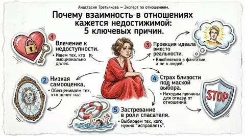 На консультациях психологи часто сталкиваются с клиентами, которые делятся своими переживаниями о бедах в любовной сфере. Множество людей ощущают замкнутый круг: те, кто им симпатичен, не отвечают взаимностью, а те, кто проявляет интерес, не вызывают чувств. Этот парадокс вызывает внутренние конфликты и беспокойства, заставляя думать, что что-то не так.