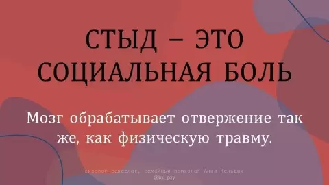 Стыд представляет собой социальную боль. Современная нейробиология говорит о том, что стыд и чувство социального отвержения обрабатываются мозгом аналогично физической боли. Когда мы боимся открыть свои желания, мозг воспринимает это как угрожающее выживанию: «Меня отвергнут!» Тело отвечает на это стандартной стрессовой реакцией — боязнью, бегством или «замерзанием».